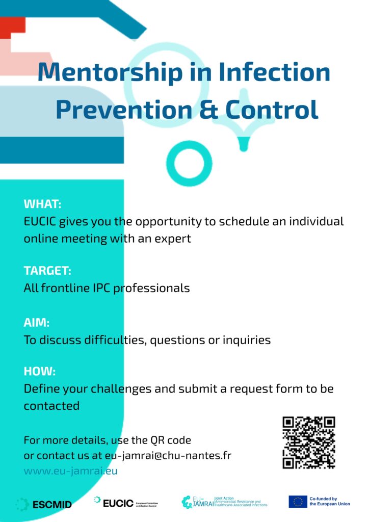 One aim of the EU-JAMRAI 2 in the Infection Prevention and Control work area is to support partners in the implementation of IPC core components at the national and local level, with an overarching goal of peer-to-peer exchange between professionals across Europe and a relationship with European expert mentors. This program is carried out in close collaboration with EUCIC – the European Committee on Infection Control, part of the ESCMID.